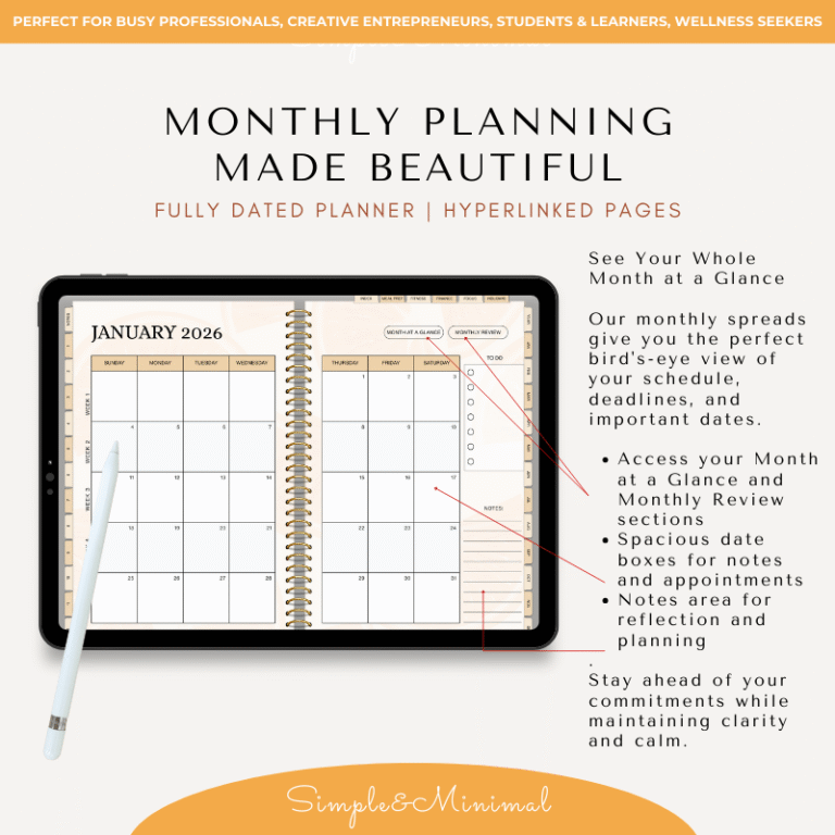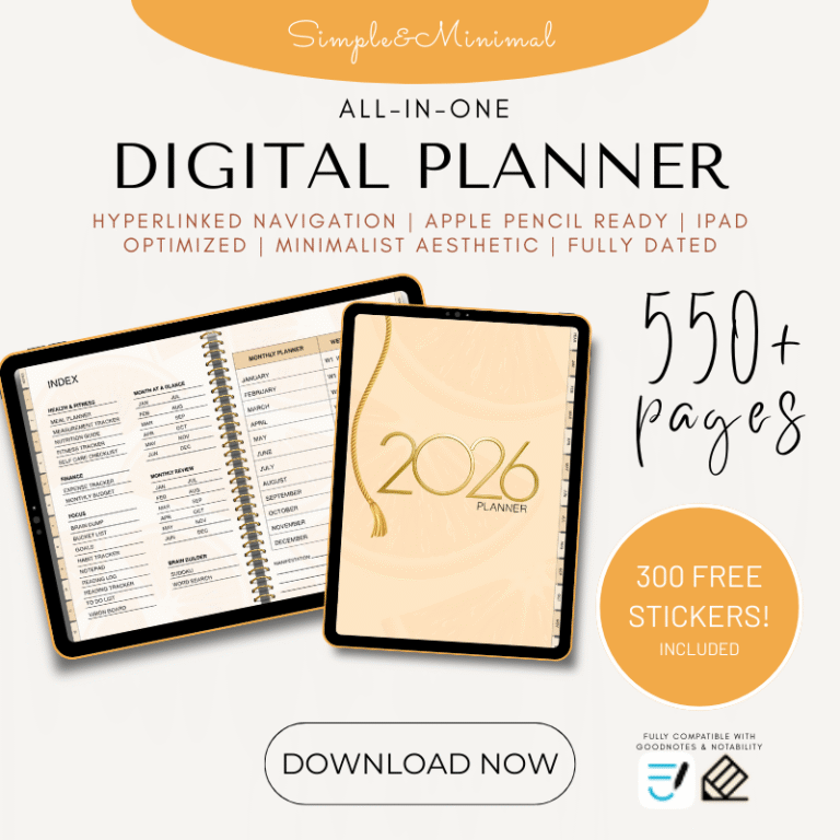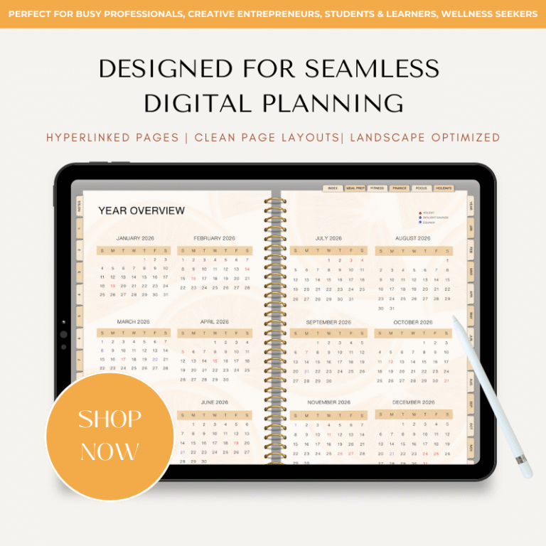 This hyperlinked PDF planner is optimized for iPad and tablet use and works seamlessly with popular note-taking apps such as GoodNotes and Notability.