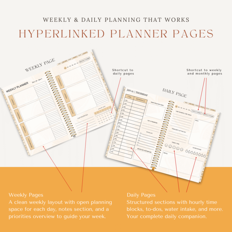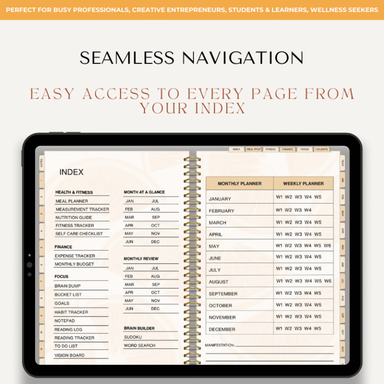 Built-in navigation links allow you to jump between sections quickly. You can return to your index, move between pages, and navigate the planner without endless scrolling.