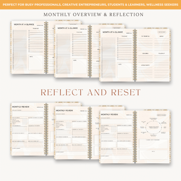 This planner gives you a complete set of thoughtfully designed pages that support both planning and note-taking: